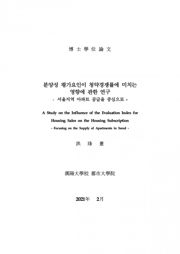 분양성 평가요인이 청약경쟁률에 미치는 영향에 관한 연구 - 서울지역 아파트 공급을 중심으로 - > thesis